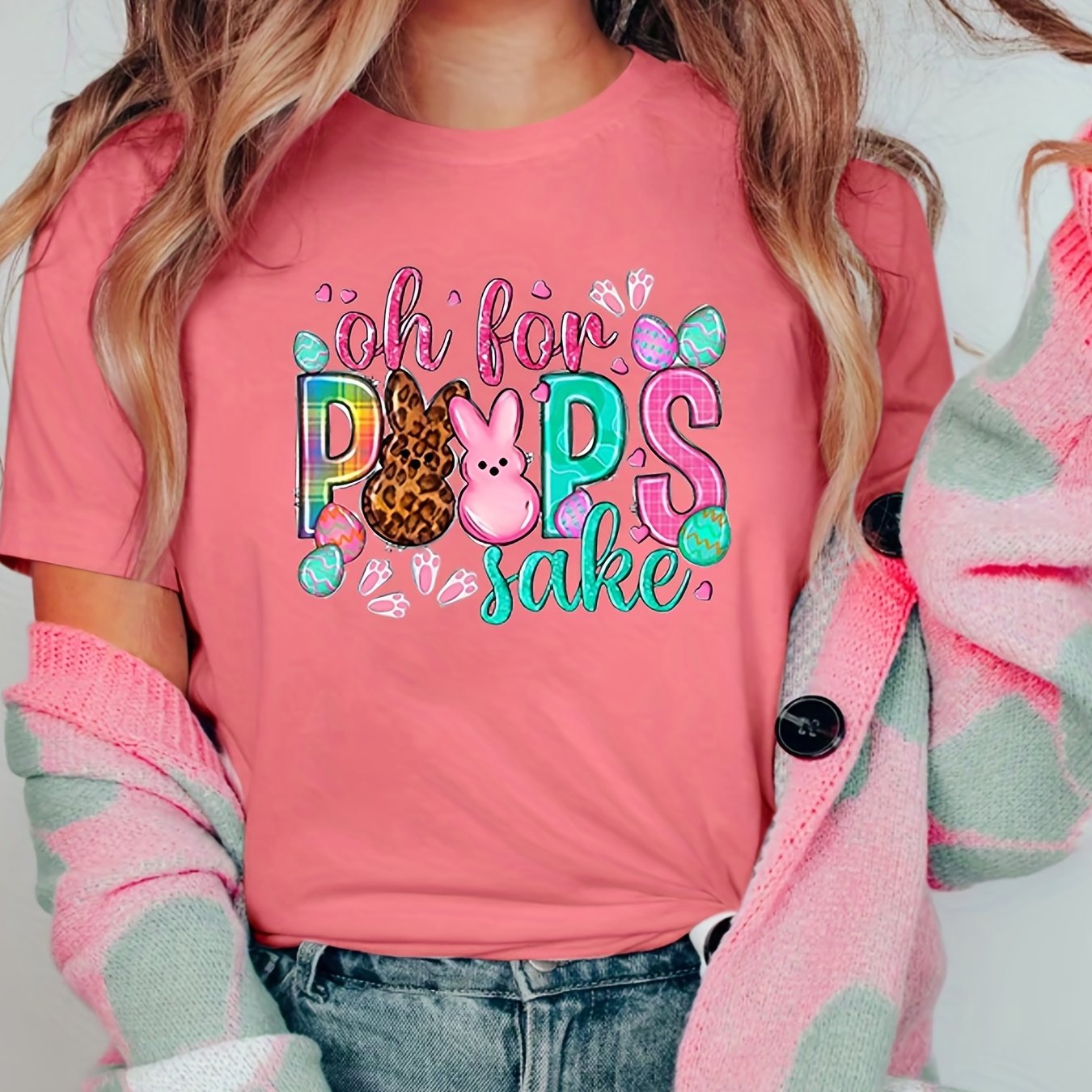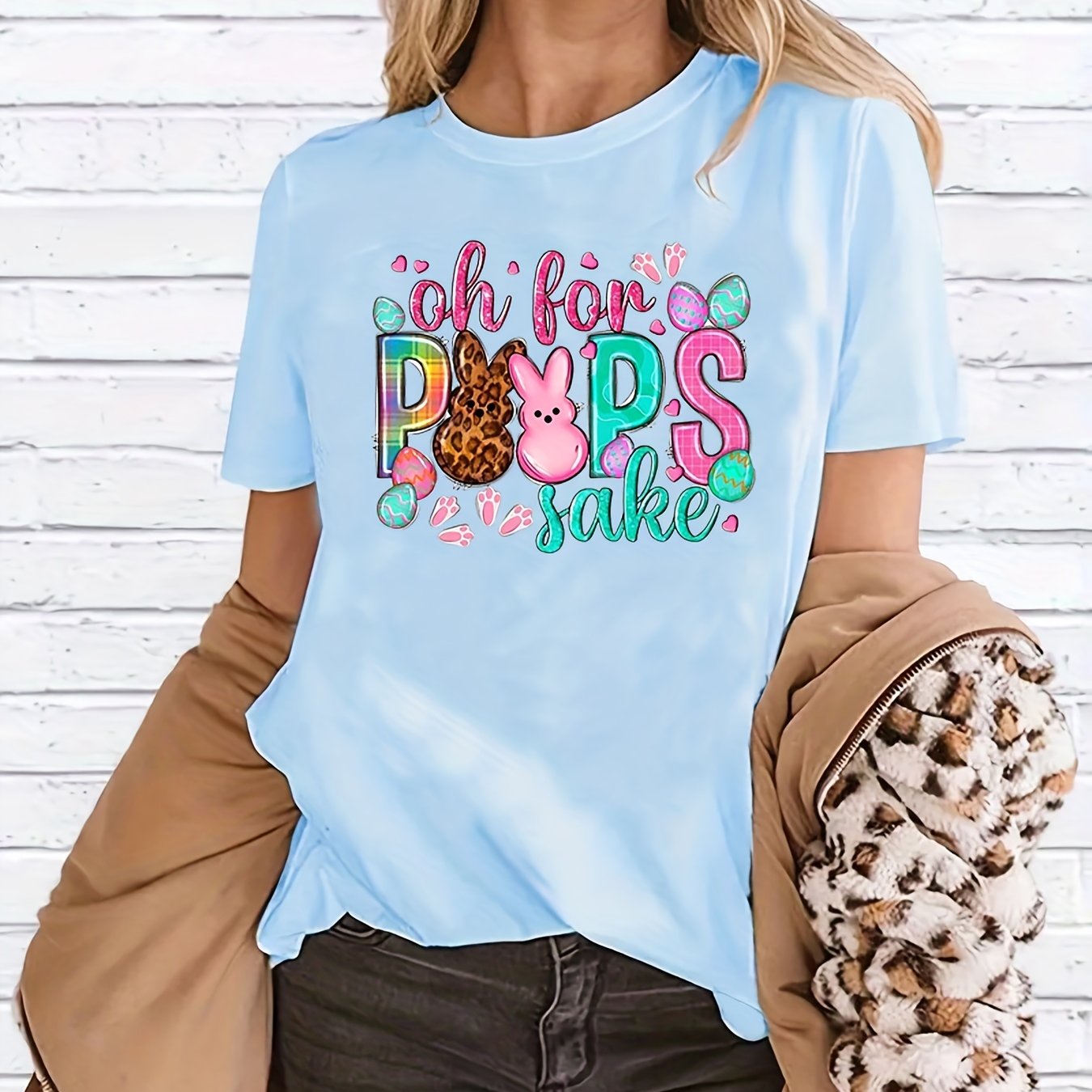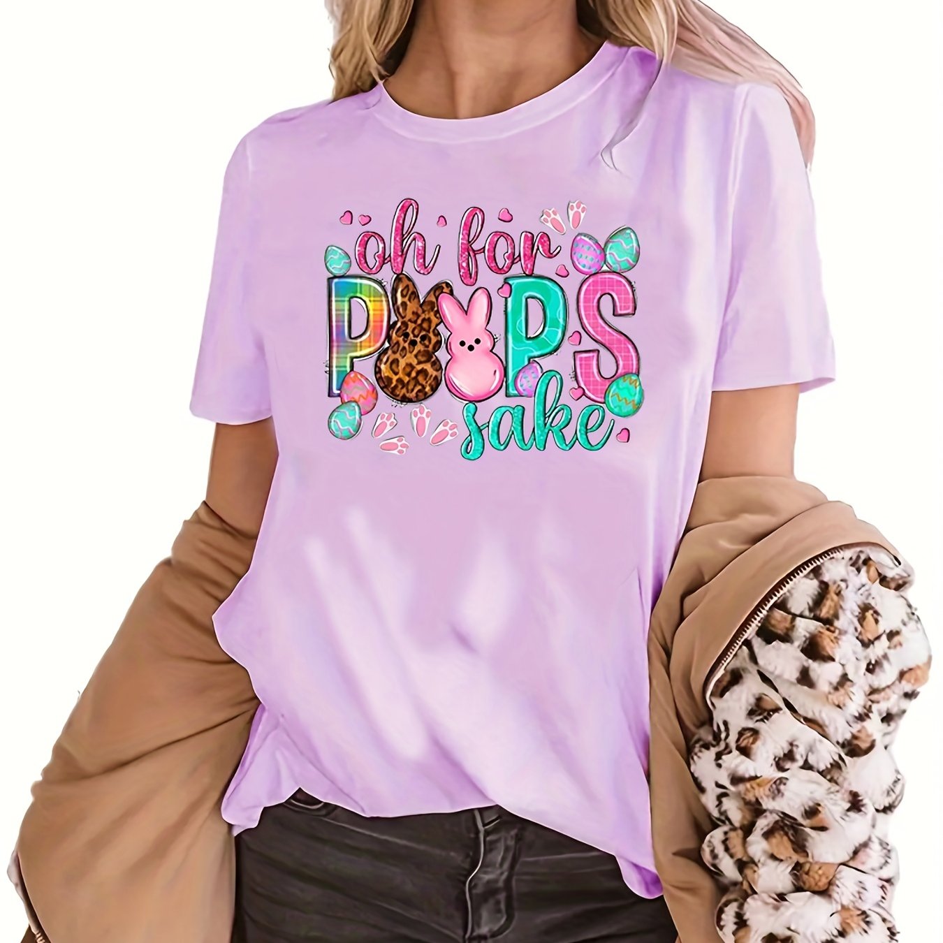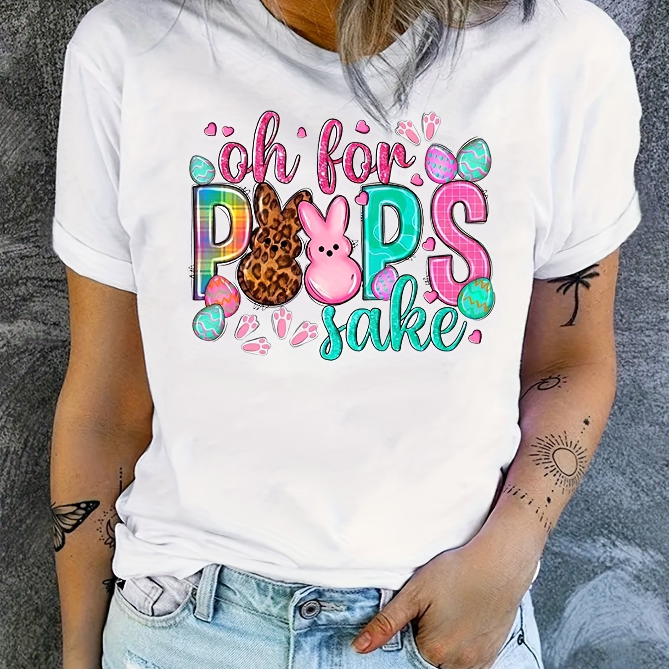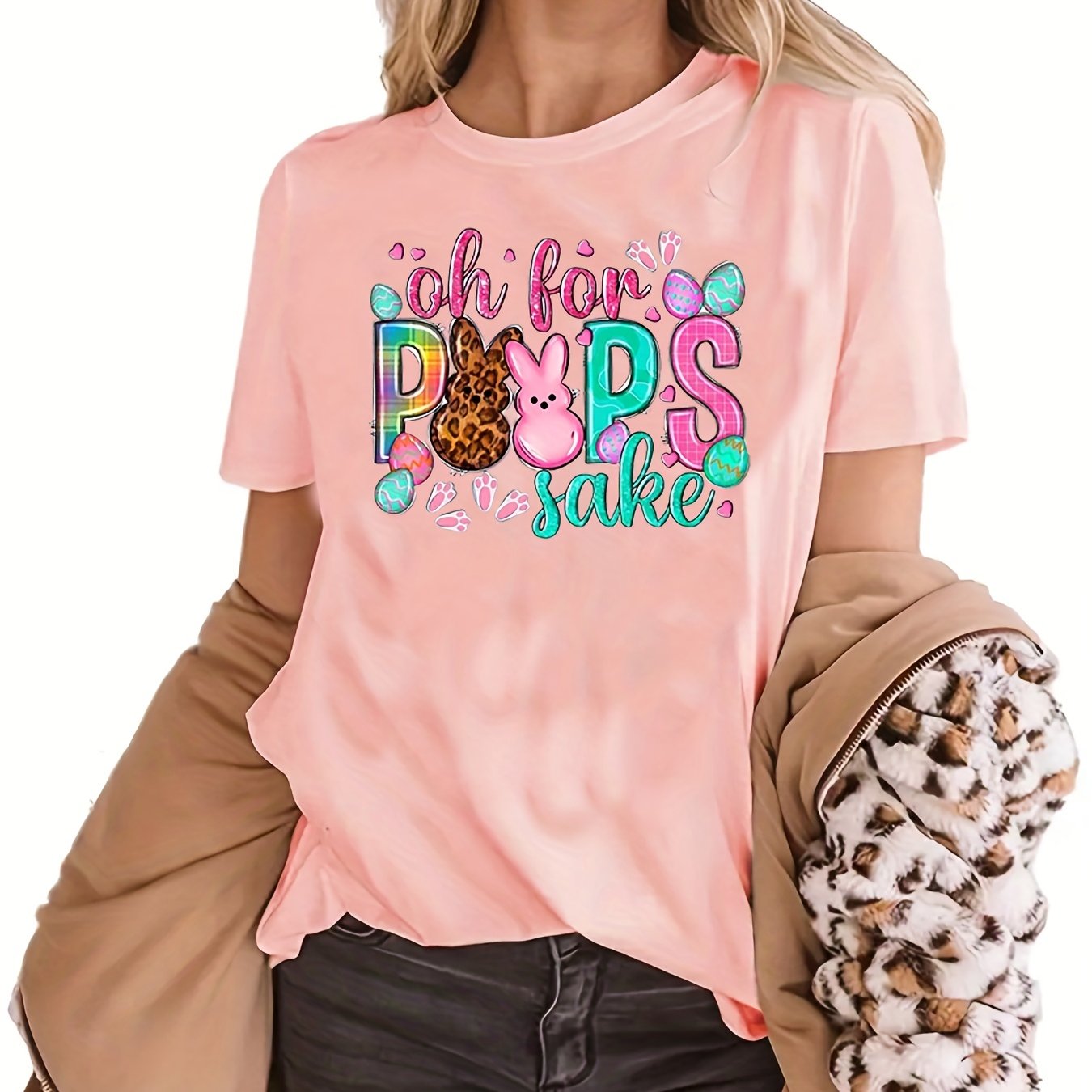 Home Women's Athleisure Creative Rabbits Printing Short-sleeved T-shirt, Sports And Fitness Running Loose Top, Women’s Clothing