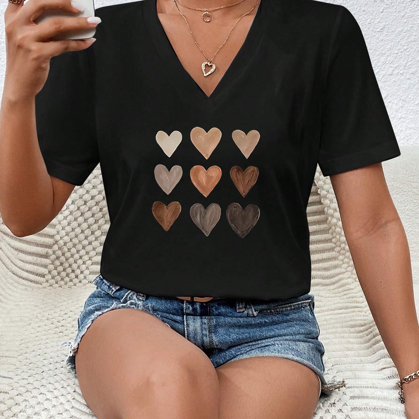 7 reviews for Heart Print Casual T-Shirt, V Neck Short Sleeves Stretchy Versatile Sports Tee, Valentine’s Day Women’s Tops