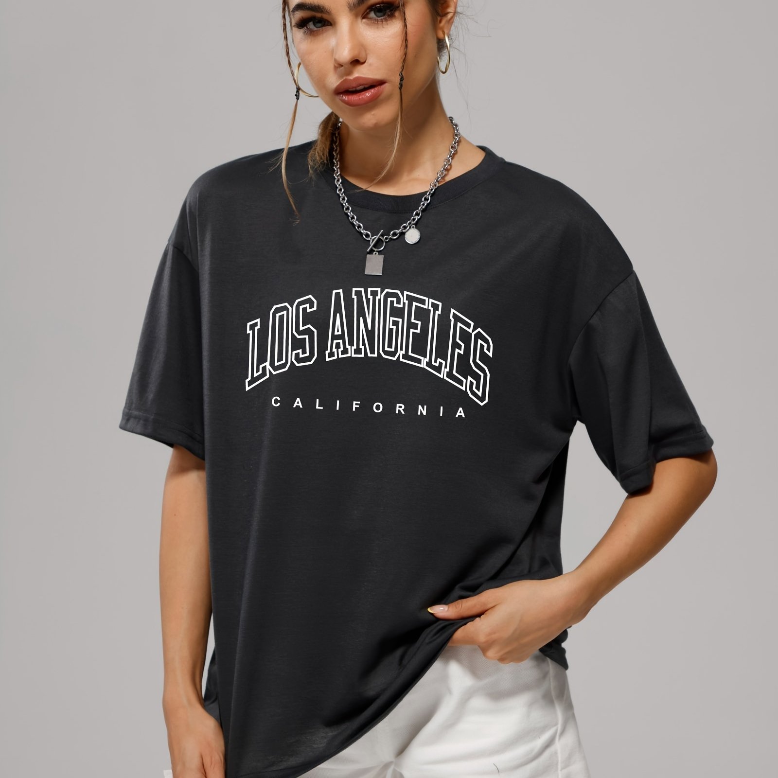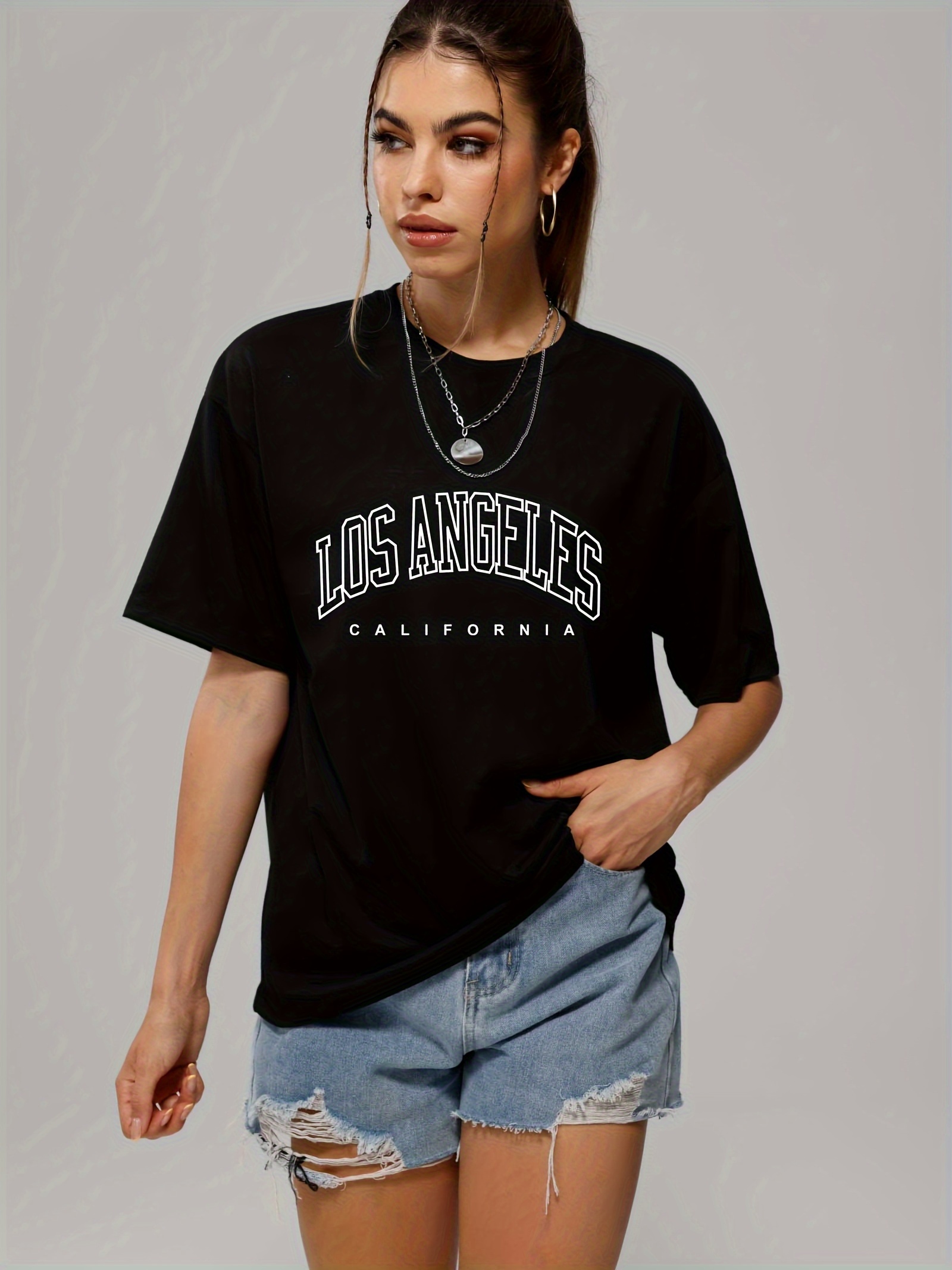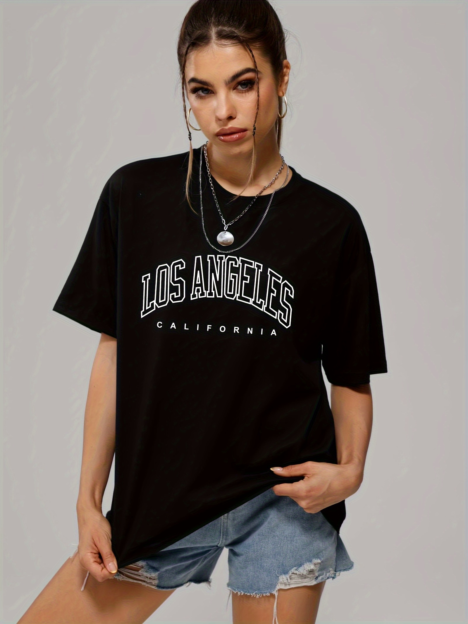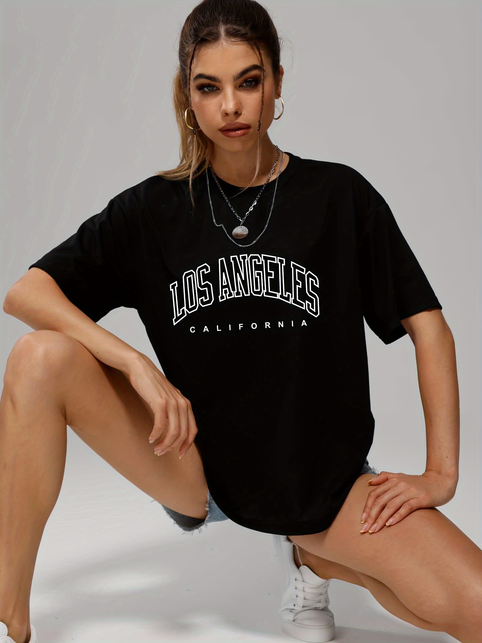 The price of Los Angeles Letter Graphic Loose Sports T-shirt, Short Sleeves Round Neck Fashion Tops, Women’s Activewear is really cheap compare to other websites.Really happy I found this website.